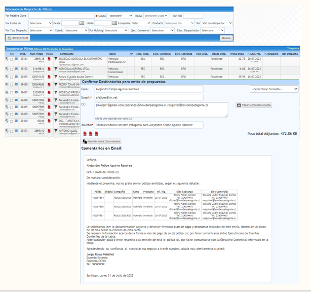 Nuestro compromiso es que en dos semanas su empresa esté operando al 100% con el sistema. Si desea cargar todas sus pólizas históricas, no hay problemas, por una suma adicional a la implementación, que dependerá de la calidad de la información entregada, podremos migrar todos sus datos históricos.