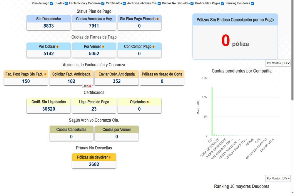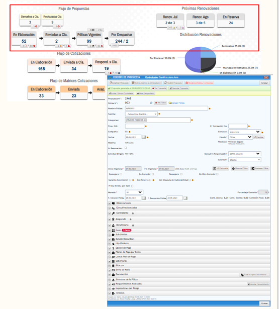 Por un bajísimo precio por usuario, Ud. podrá acceder a una plataforma con todo lo necesario para administrar sus pólizas y renovaciones, endosos, cotizaciones, cobranza y pagos, solicitudes de cotización y gestión de siniestros, además de una serie de reportes que lo ayudarán a su gestión diaria.